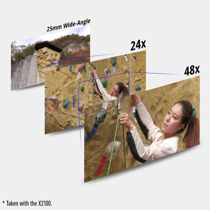 25 mm* geniş açıdan 24x optik zumlu 600 mm* telefotoya kadar, ayrıca 4K'da 32x'e ve FHD'de 48x'e kadar i.ZOOM, çok çeşitli çekimler için idealdir.
